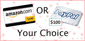 $100 in Paypal Cash or a $100 Amazon.com eGift Card. a Rafflecopter giveaway